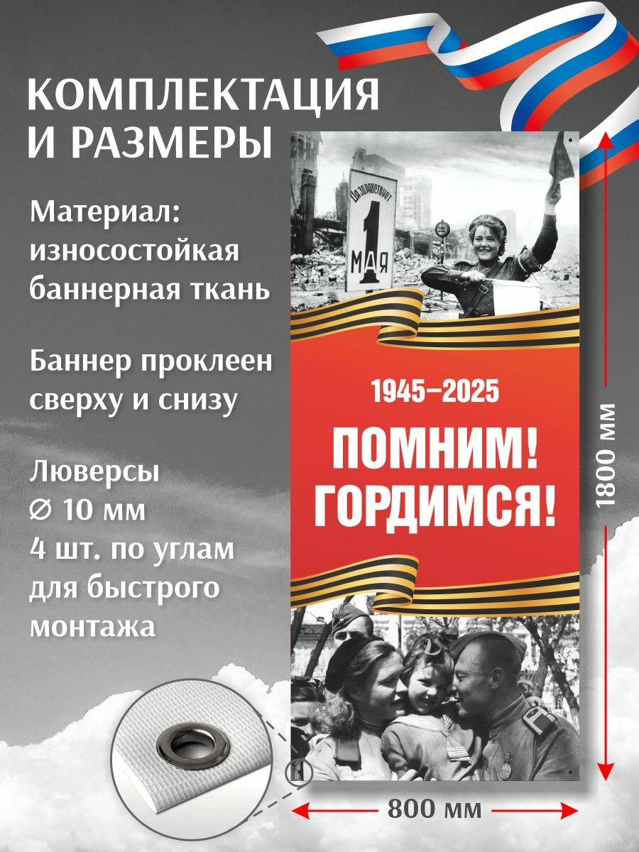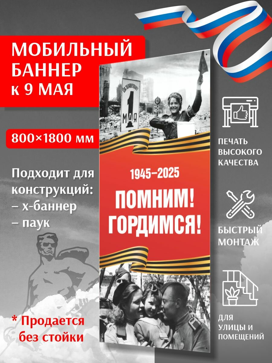 Баннер 9 мая - "80 лет Победы" для мобильного стенда с проклейкой