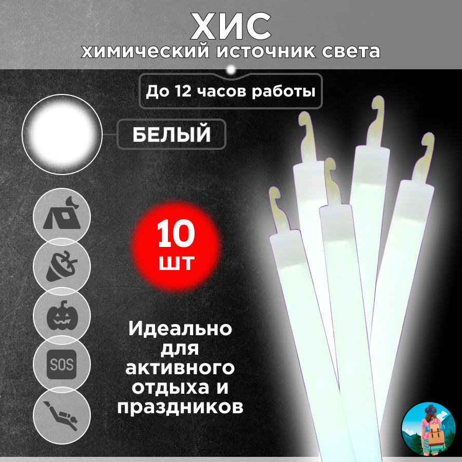 СохранитьХимический источник света (ХИС), 10шт. белый, большая неоновая палочка 15х150 мм, тактический источник света без батареек интересное: