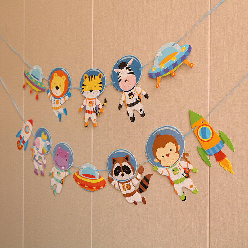 Гирлянда на ленте "Зверята-космонавты", картон, для праздника, длина ленты 4,5 м интересное: