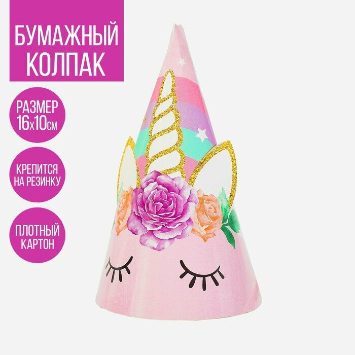 Праздничные колпаки картонные Страна Карнавалия Единорог, розовый, 6 шт. интересное:
