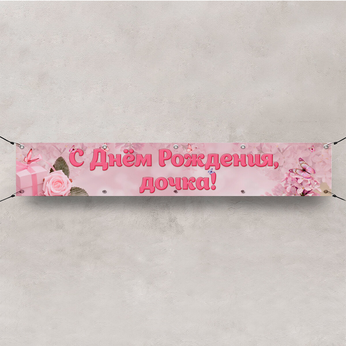 Купить Баннер "С Днём рождения, дочка" / Вывеска, растяжка с поздравлением дочке / 2x0.4 м.