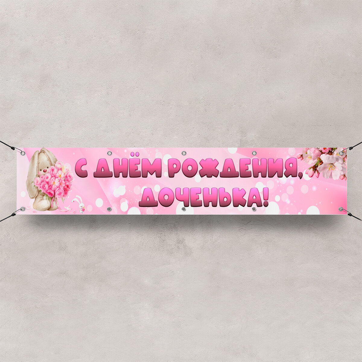 Баннер "С Днём рождения, доченька" / Вывеска, растяжка с поздравлением дочке / 3x1 м.