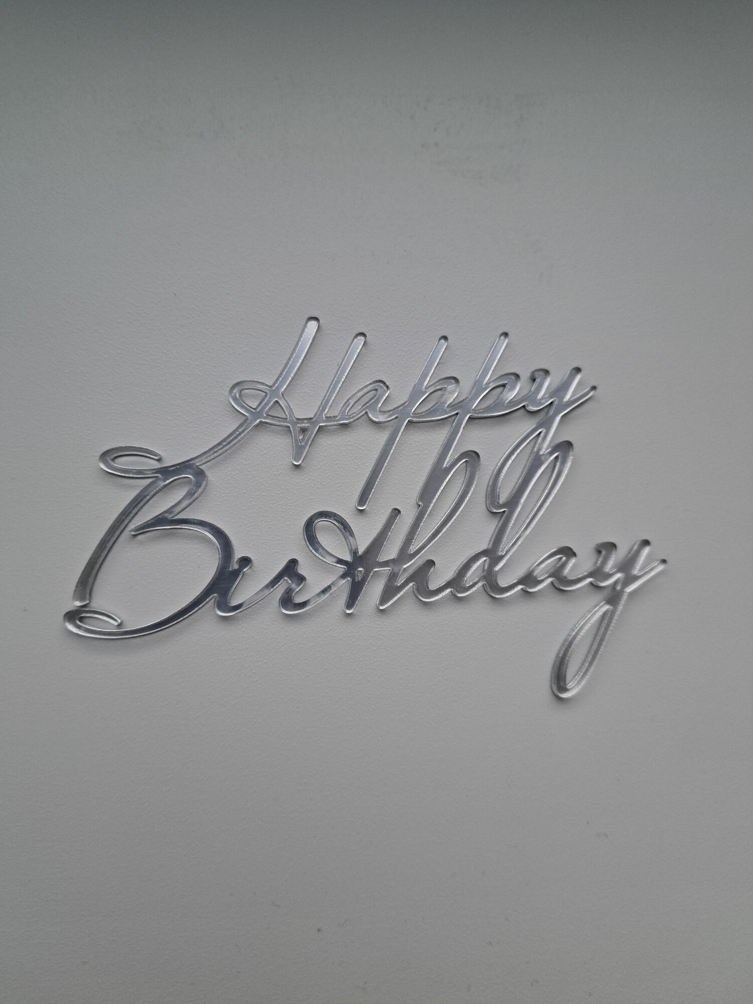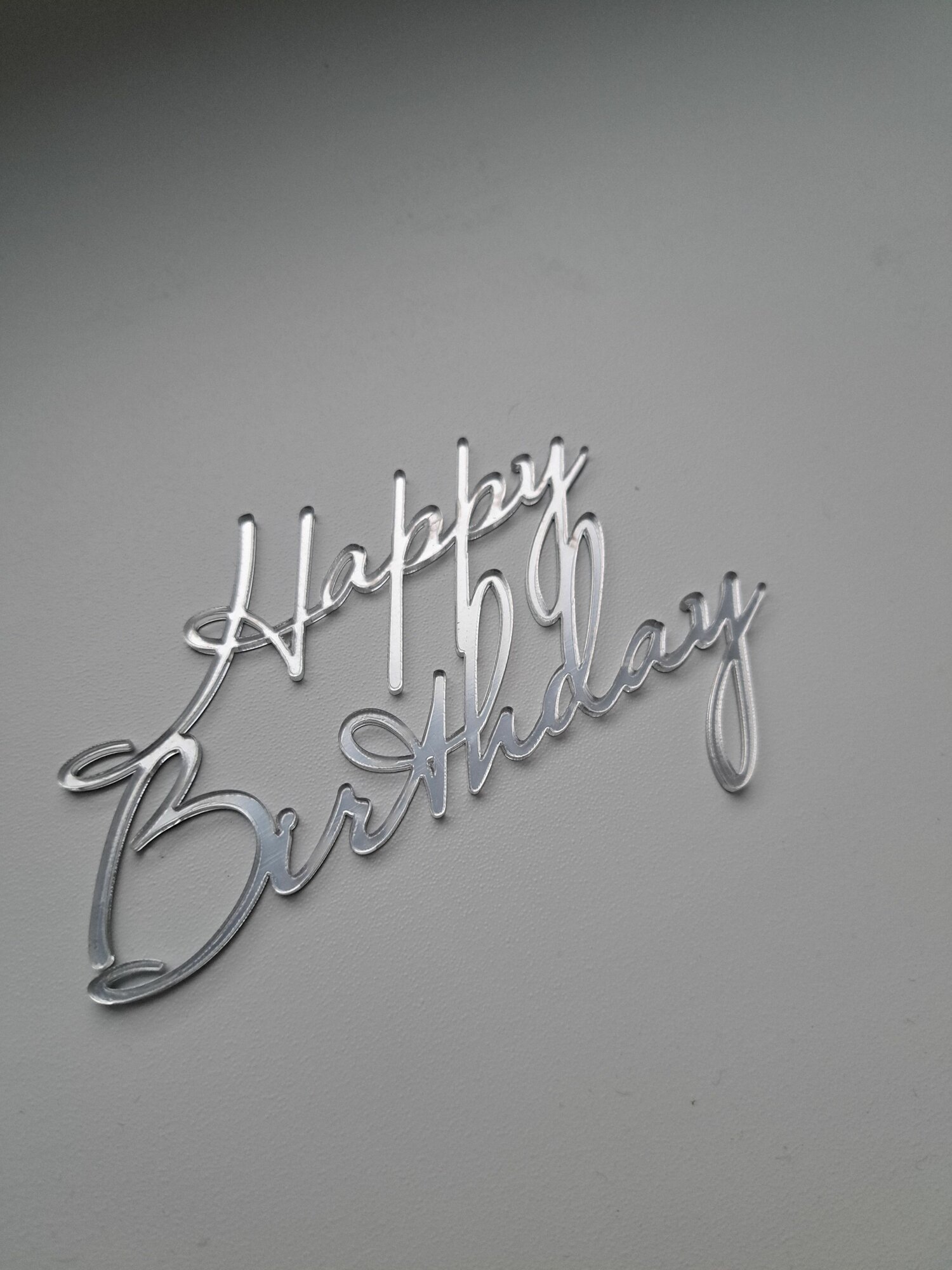 Купить Топпер на торт "Happy birthday", зеркальный серебрянныйакрил