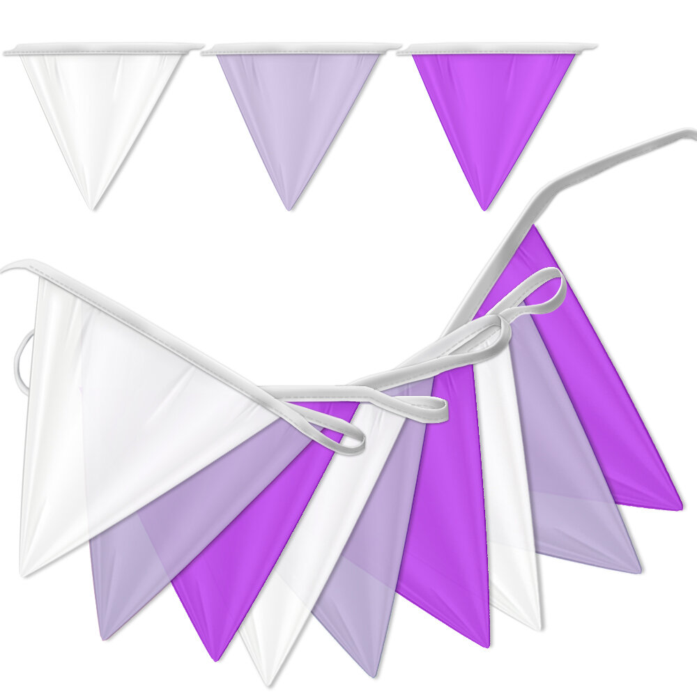 Купить Гирлянда, флажная лента "Сиреневый туман" из фиолетовых, сиреневых и белых флажков треугольников / длина 10 м.