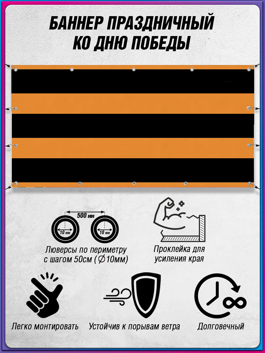 Купить Баннер в виде георгиевской ленты на 9 мая, День Победы / 3x1 м.