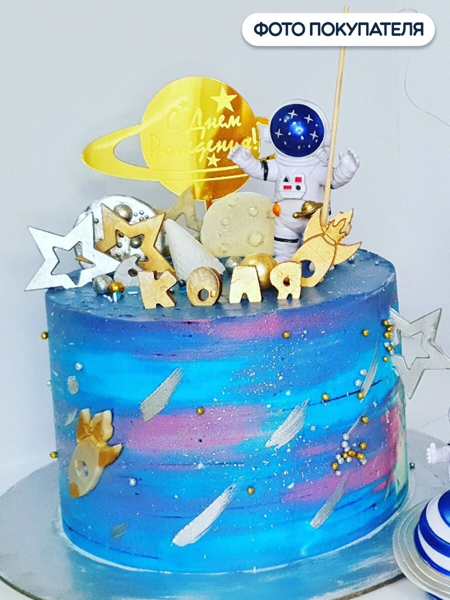Топпер декоративный для торта Riota Космос, планета Юпитер, С Днем рождения, золото, металлик, 13х14 см интересное: