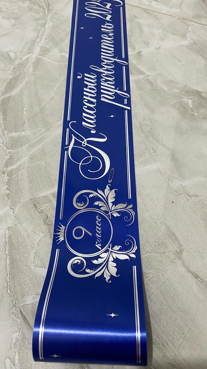 Лента Классный руководитель 2025 9 класс цвет синий, печать серебро 1 шт. интересное: