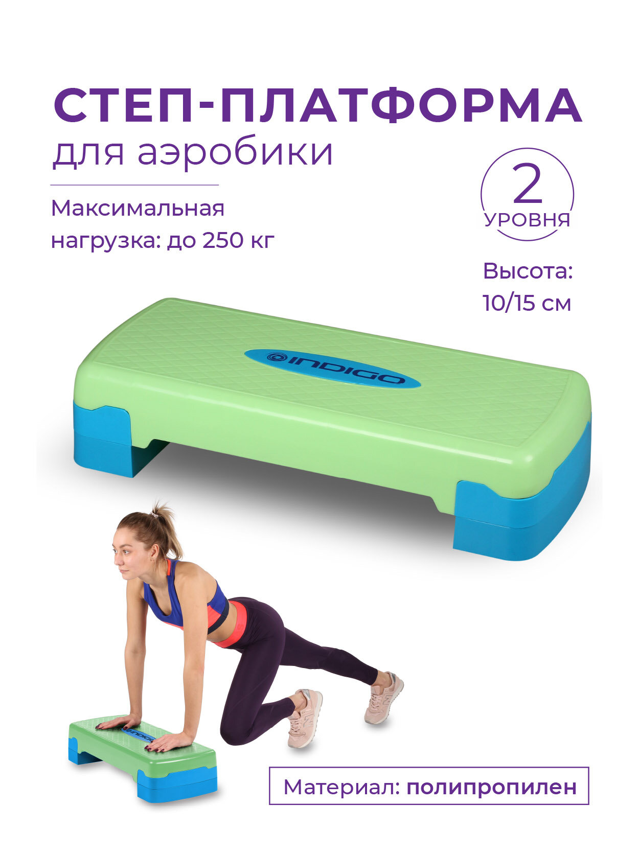 Степ-платформа для аэробики 2 уровня INDIGO IN171 68*28*10/15 см Сине-зеленый интересное: