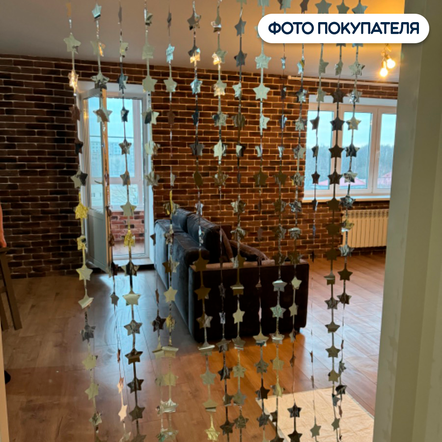 Гирлянда занавес фольгированная блестящая для праздника Riota Звезды, серебрянный, 100х200 см интересное:
