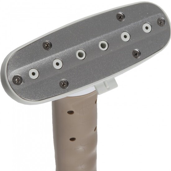 Вот 2-литрового бачка маловато, я бы побольше поставила, правда, тогда утяжелится отпариватель. Высокой телескопической стойки хватает, чтобы развесить самую длинную одежду. P.S. Перегретый пар нагревается выше 100 градусов, поэтому без перчатки работать опасно. |