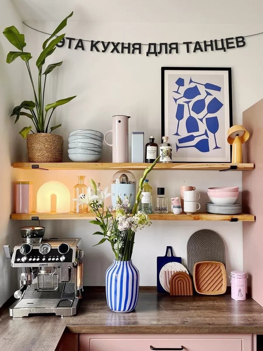 СохранитьБумажная гирлянда на стену, интерьерная - “Эта кухня для танцев“, гирлянда буквенная интересное:
