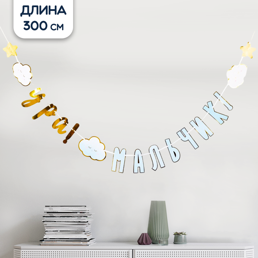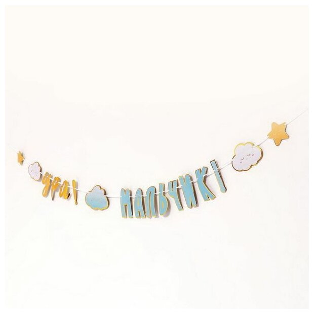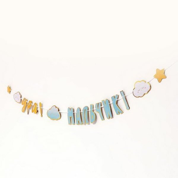 Гирлянда Riota "Облако. Ура, мальчик!", бумага, 170 см, голубая интересное: