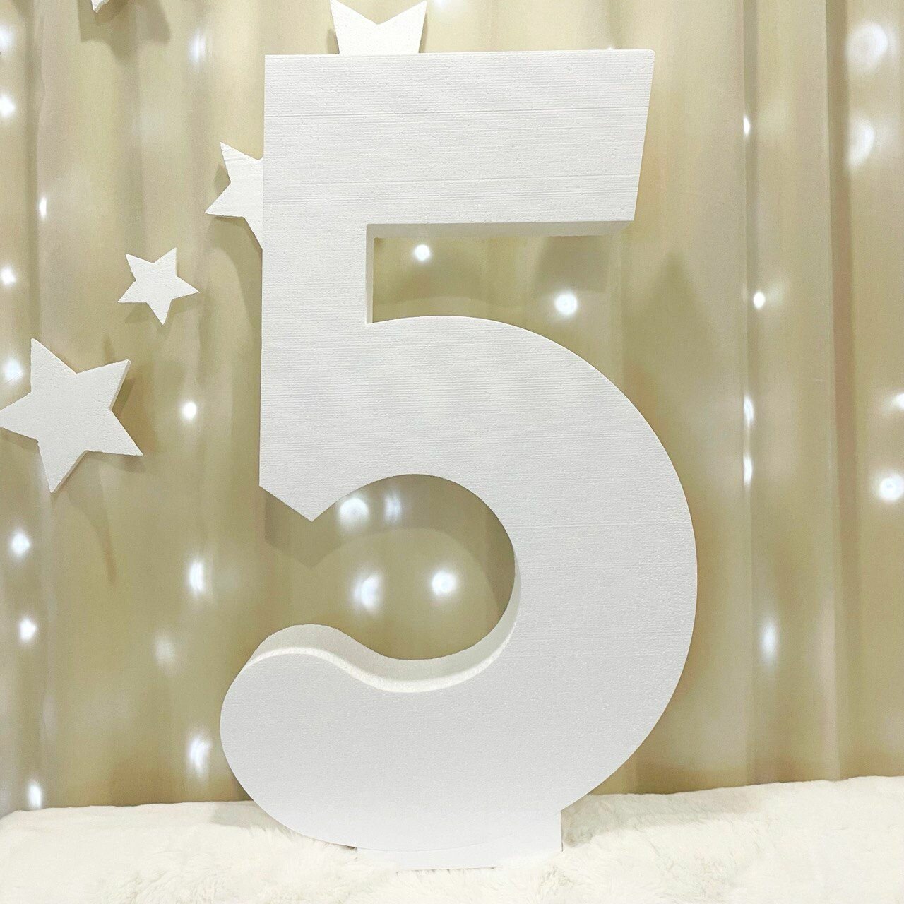 Купить Цифра 5 из пенопласта, аксессуар для фотосессии, декор для фотозоны 76х45х10см.