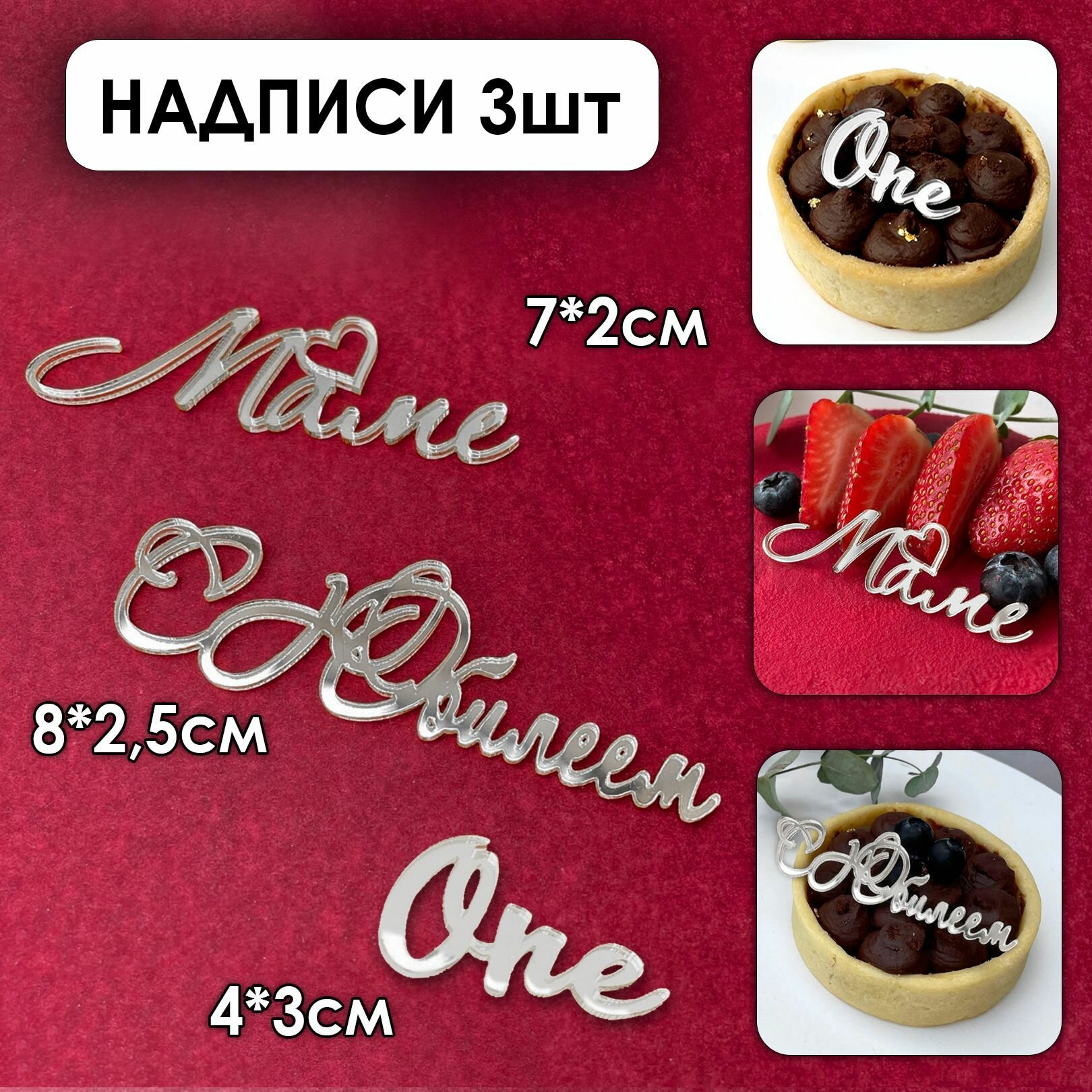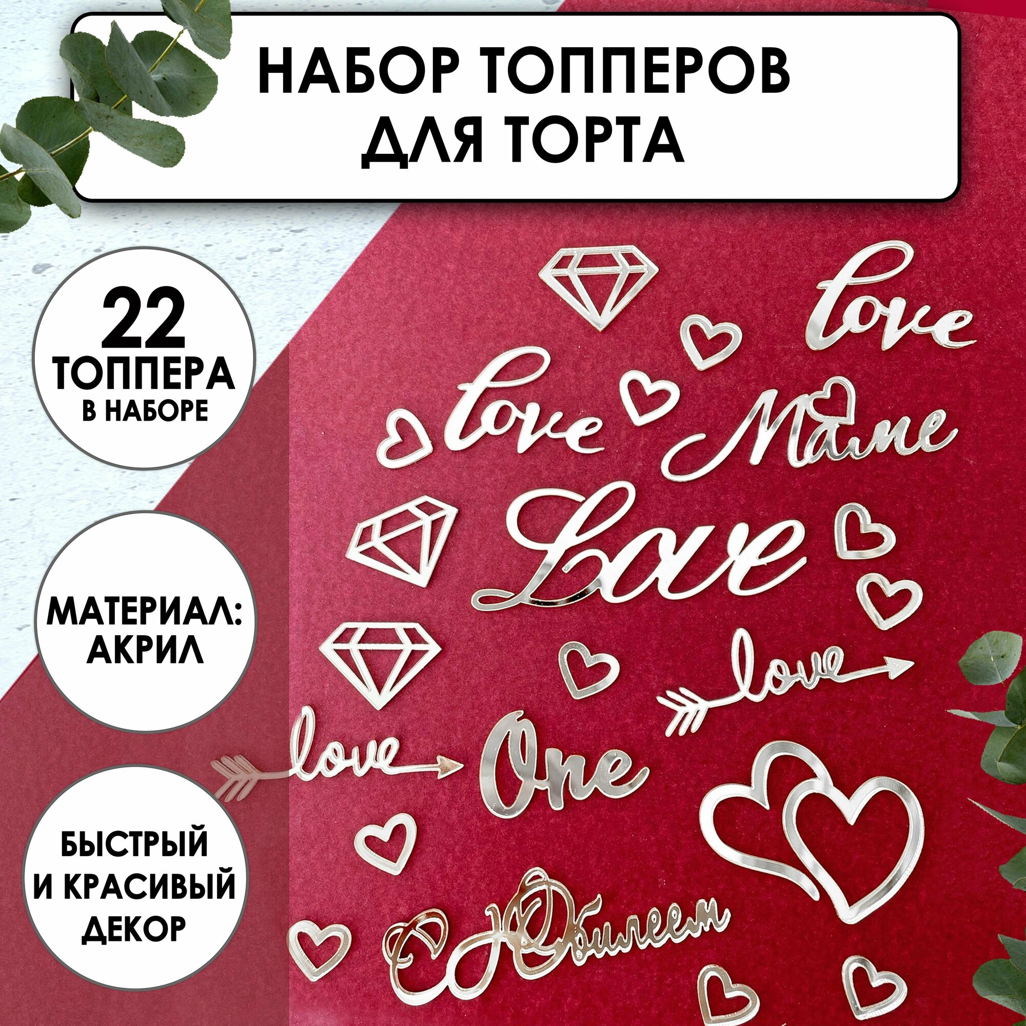 Набор топперов на торт и десерты на день рождения, маме, любимому, на юбилей, серебряный зеркальный акрил, 22шт интересное: