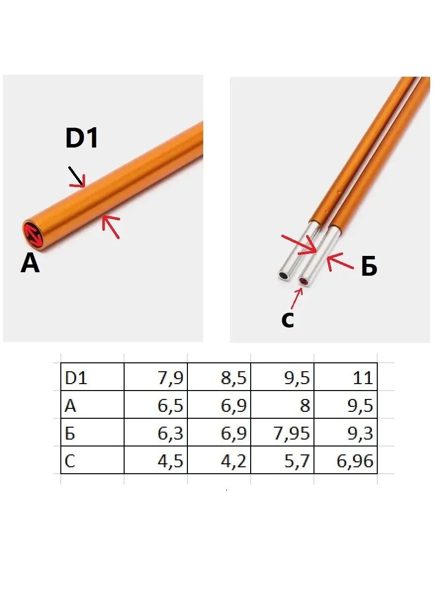 Секции для палатки, фибергласс, 2 шт, диаметр 8,5 мм, черные