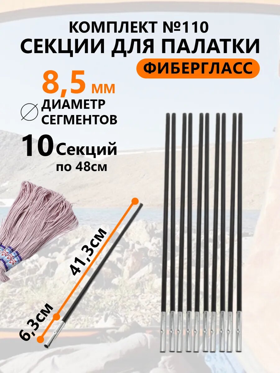 Секции для палатки фибергласс, 10 шт, диаметр 8,5 мм, резинка интересное: