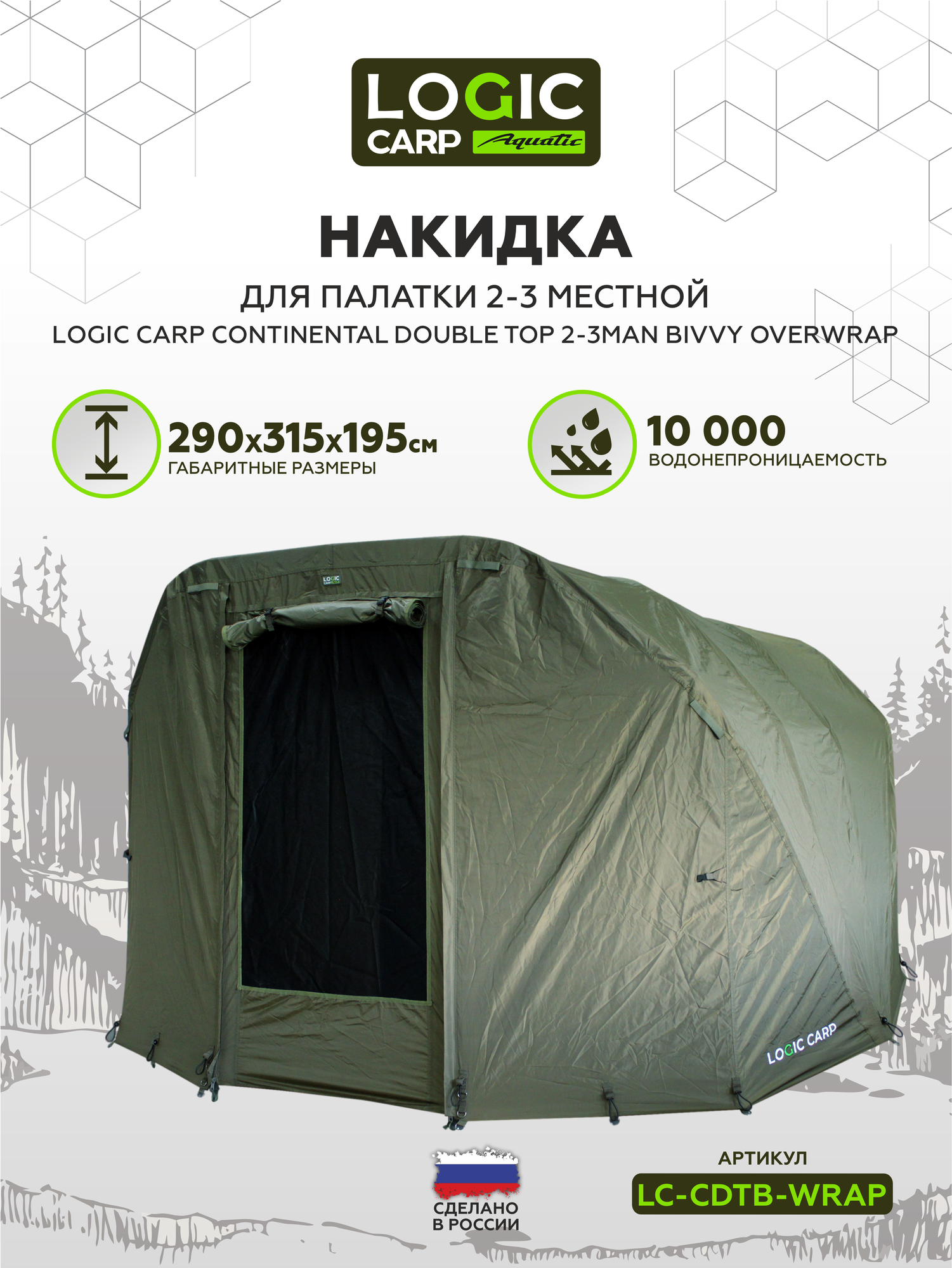 Накидка для палатки 2-3 местной Logic Carp CONTINENTAL DOUBLE TOP 2-3MAN BIVVY OVERWRAP интересное:
