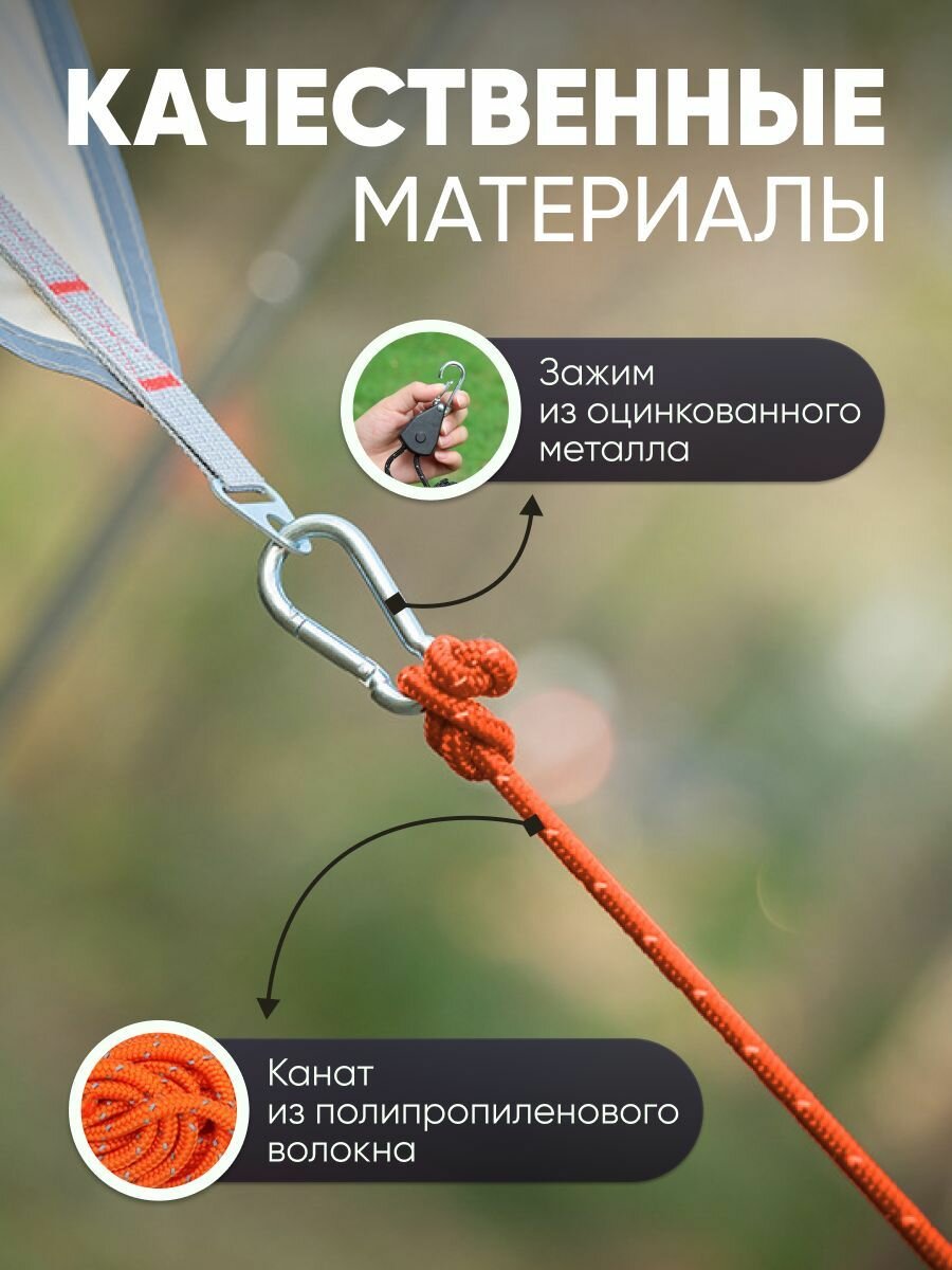 Натяжитель веревки для палатки, шатра с храповым механизмом и карабином, 4м, оранжевый интересное: