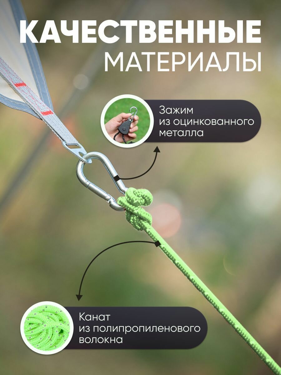 Натяжитель веревки для палатки, шатра с храповым механизмом и карабином, 4м, зеленый интересное: