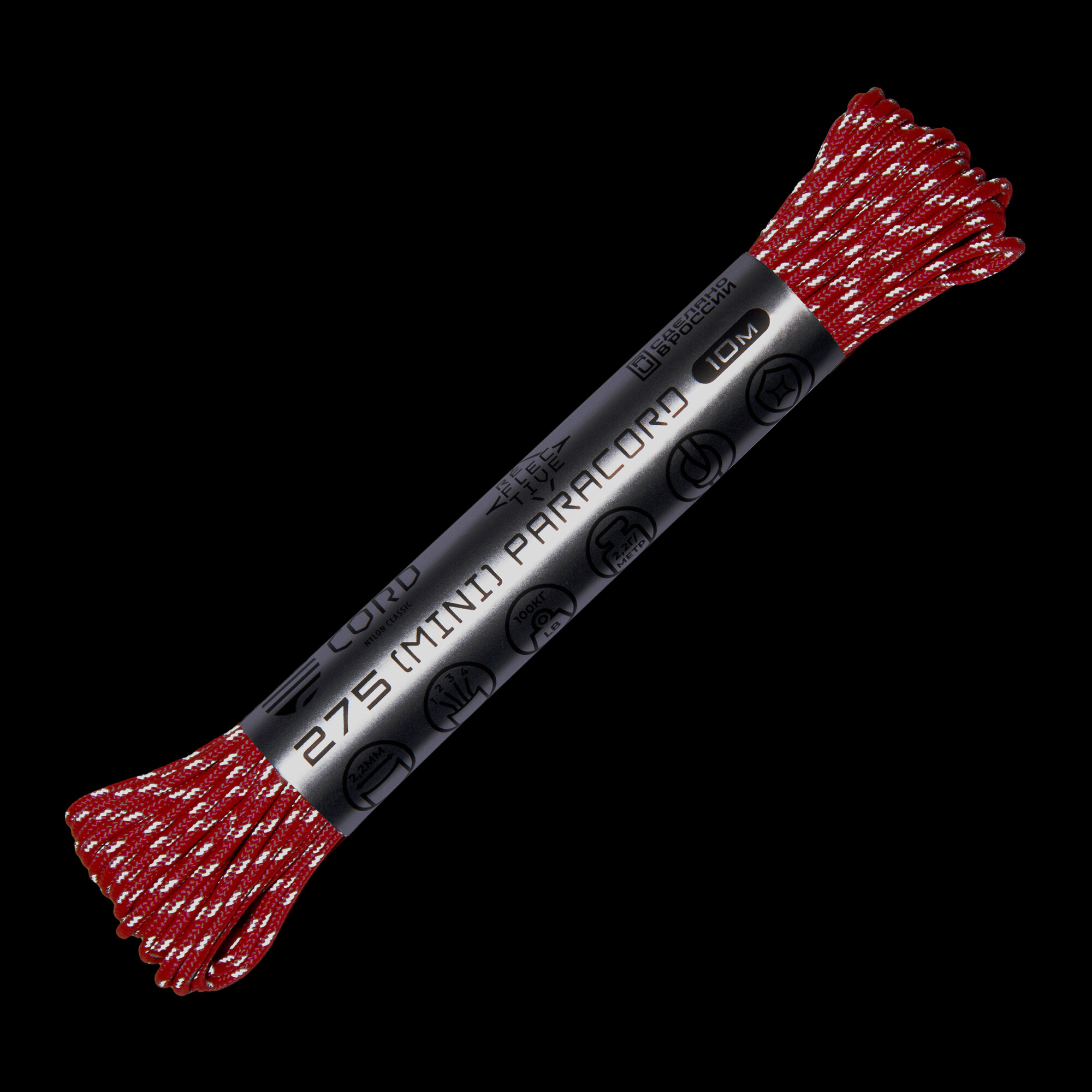 Паракорд 275 (мини) CORD nylon 10м RUS световозвращающий (bordo)
