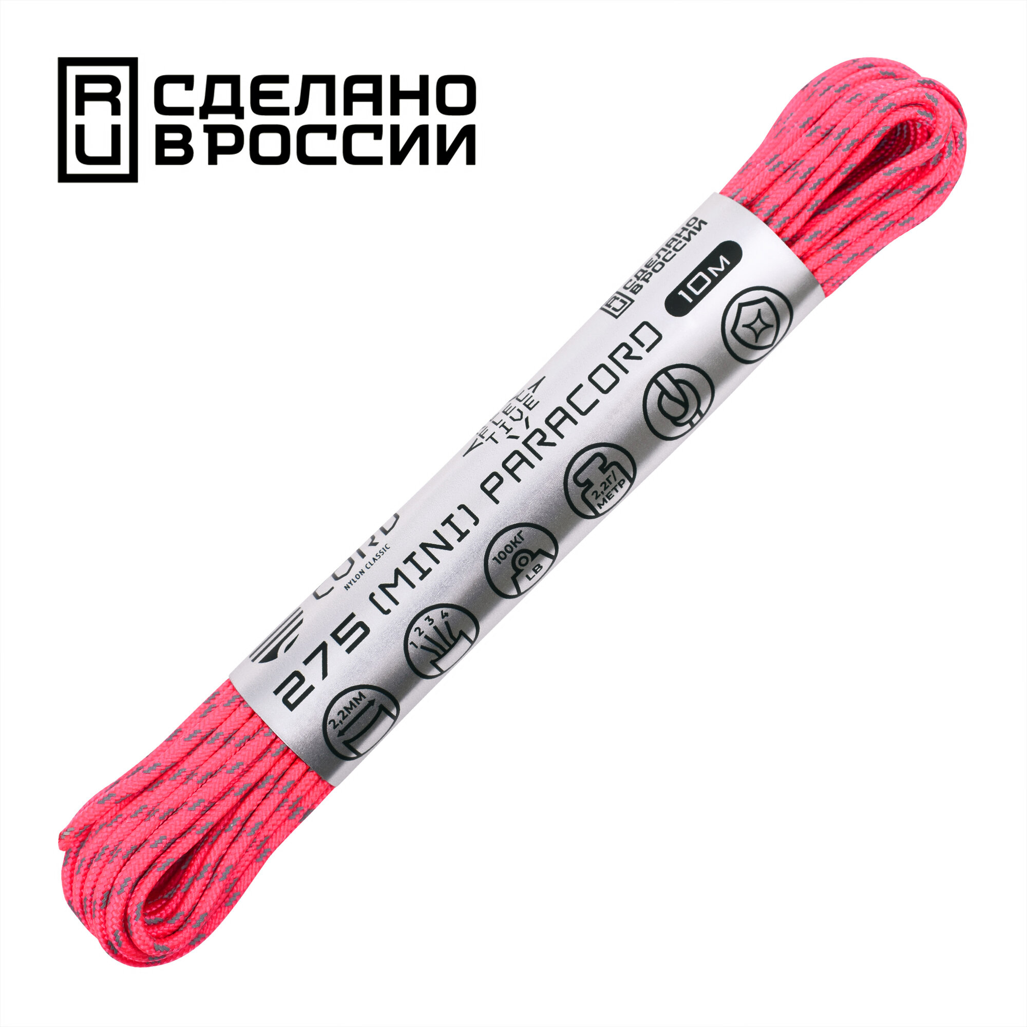 Купить Паракорд 275 (мини) CORD nylon 10м RUS световозвращающий (neon pink)