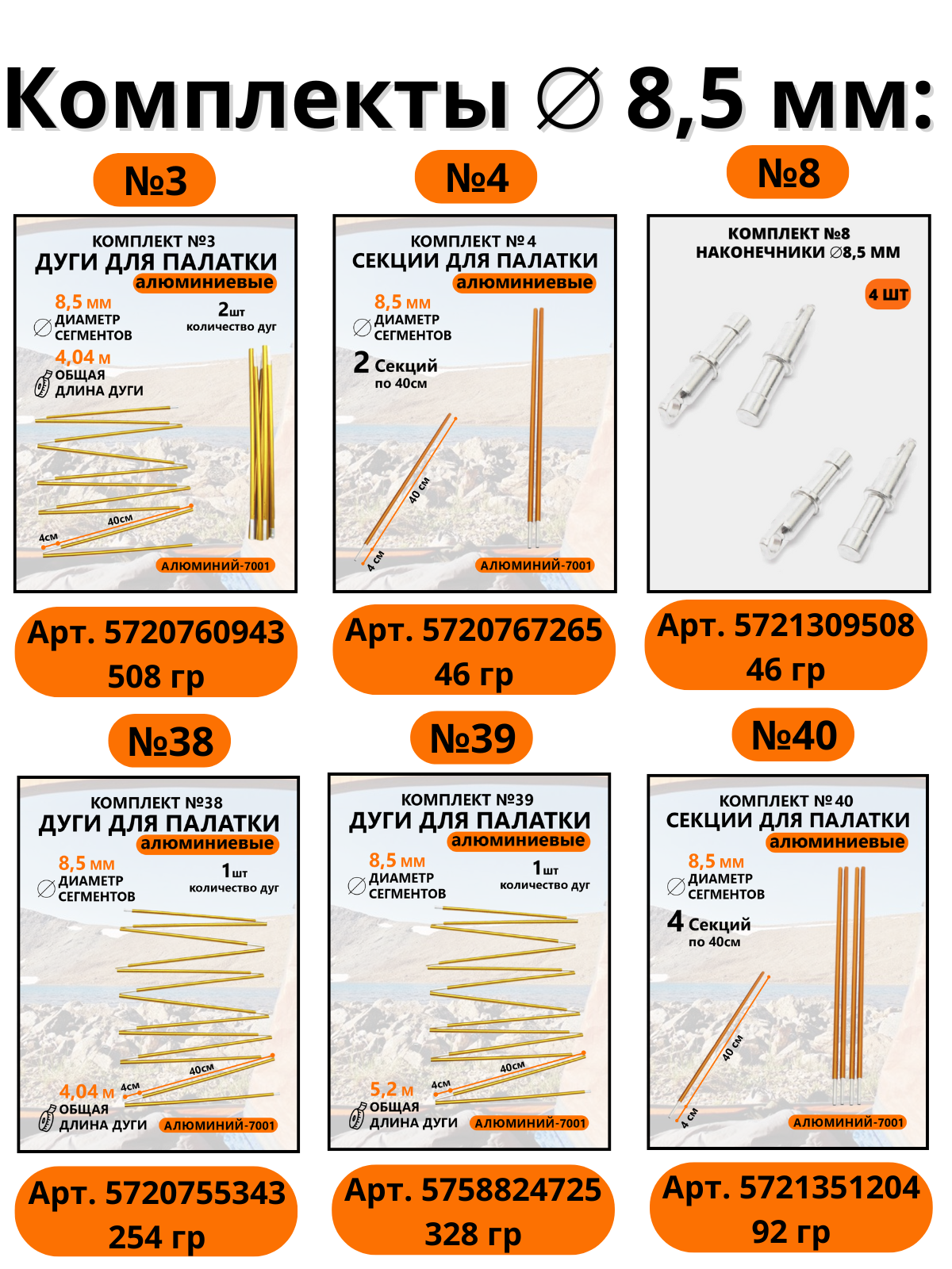 Секции для палаток алюминиевые 8,5 мм, комплект из 22 секций интересное:
