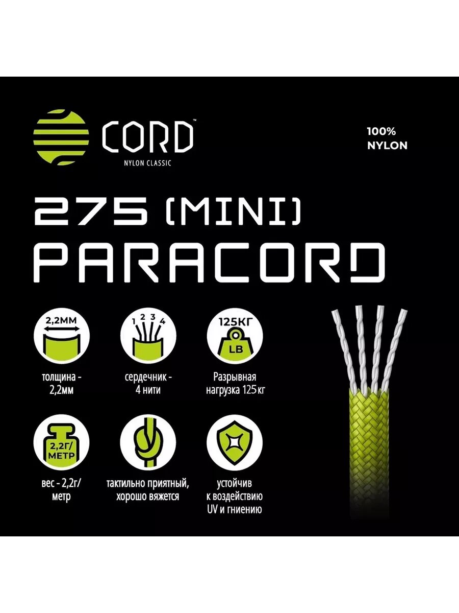 Паракорд 275 (мини) CORD nylon 10м RUS (lemon)