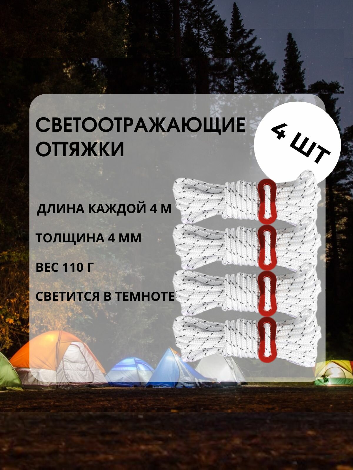 Купить Светоотражающие оттяжки для палатки, тента, толщина 4 мм, 4 шт. по 4 м, Белый