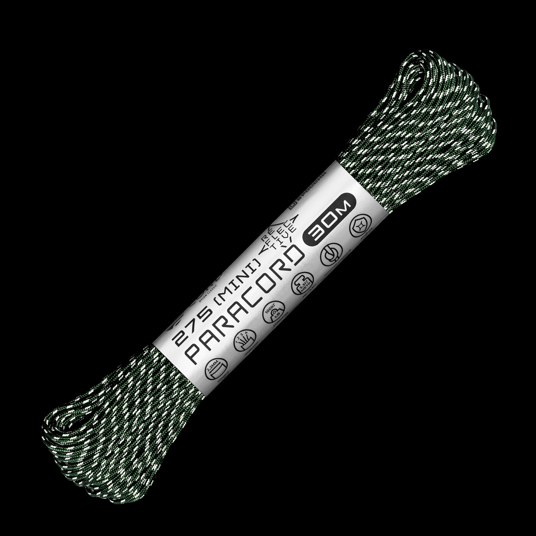 Паракорд 275 (мини) CORD nylon 30м RUS световозвращающий (ultragreen)
