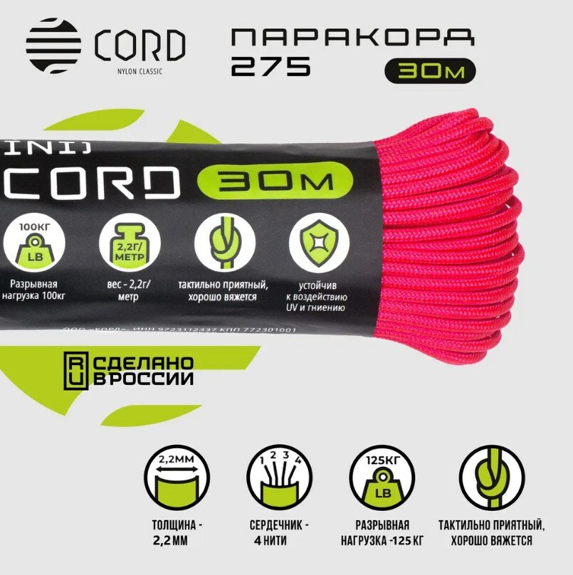 Паракорд 275 (мини) CORD nylon 30м световозвращающий (neon pink) интересное:
