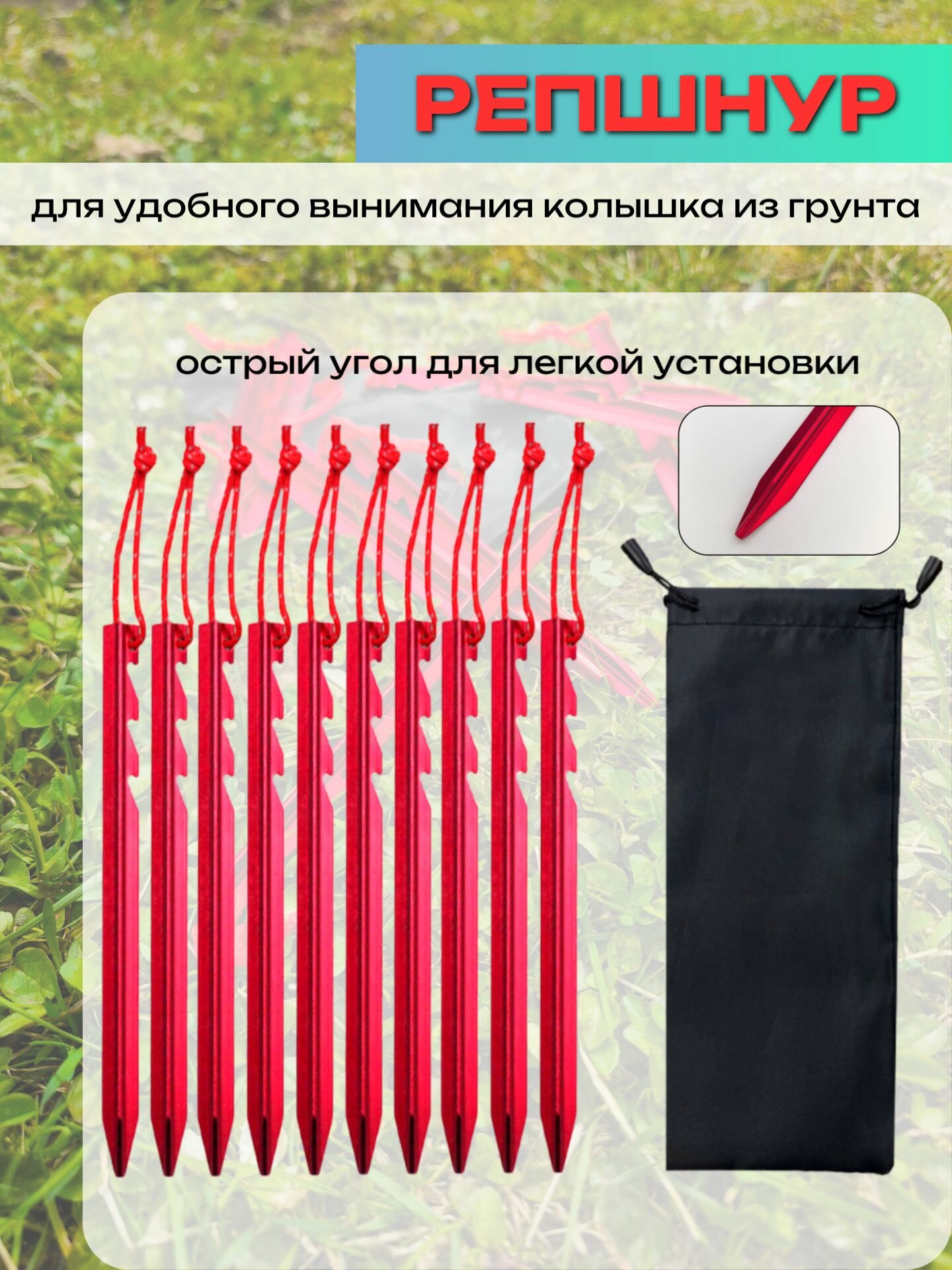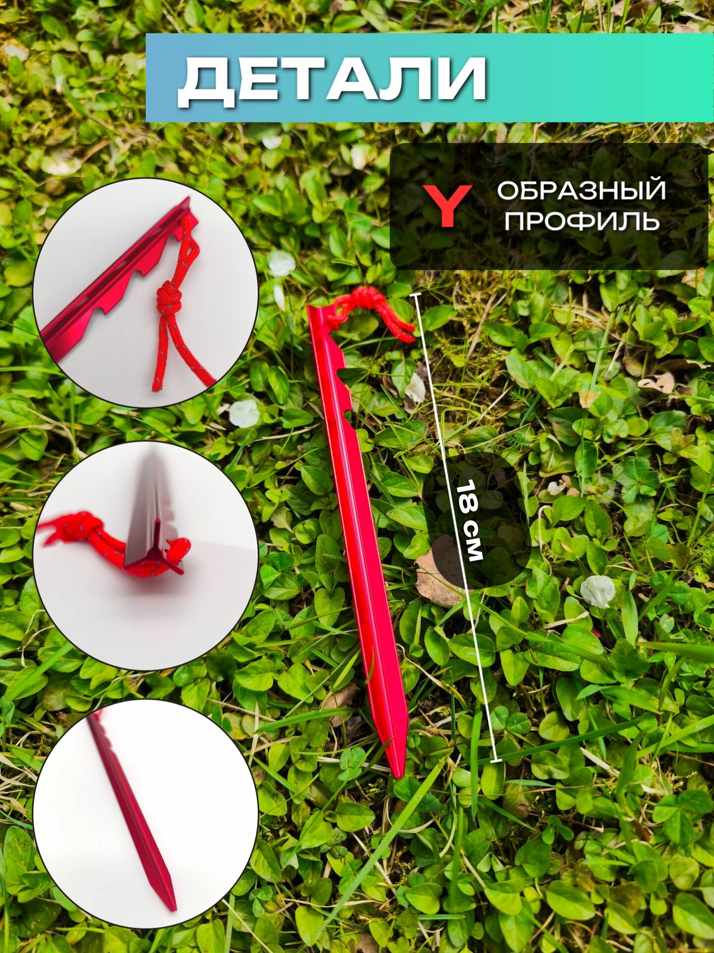 Колышки алюминиевые Y-образные для палатки/18 см/10 шт в чехле красный интересное: