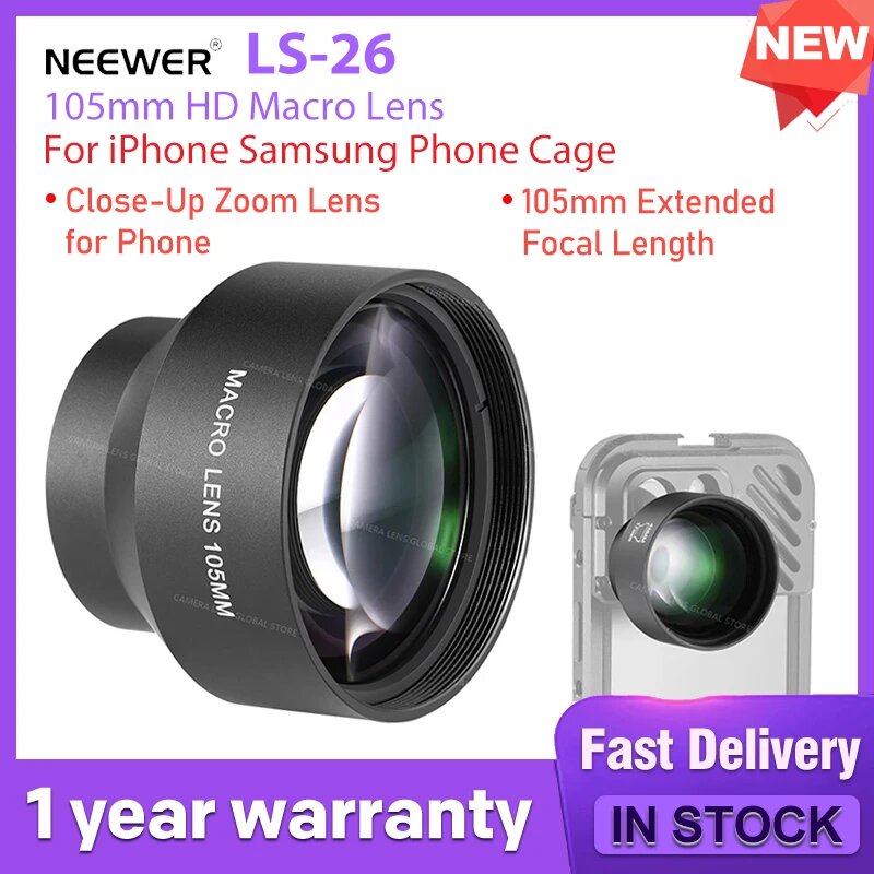 Купить Макрообъектив NEEWER HD 105 мм только для задней панели с резьбой 17 мм для iPhone, Samsung, Xiaomi, чехол-клетка для телефона с адаптером для объектива 17 мм