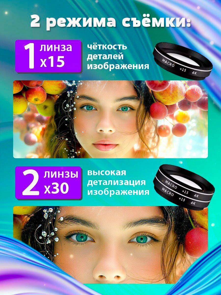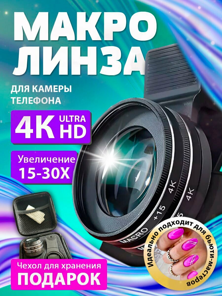 Макролинза для телефона, 30х, 4К, профессиональный макро объектив для мобильного телефона интересное: