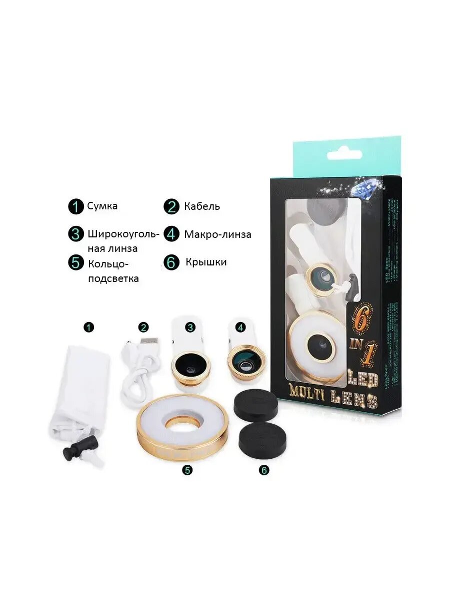 Объективы для телефона с LED подсветкой 6 в 1, цвет белый, универсальный
