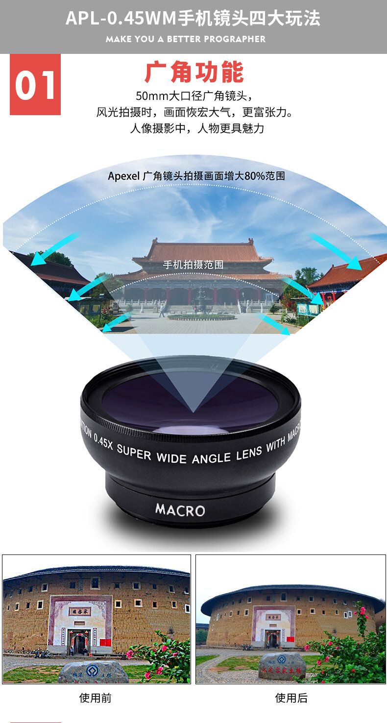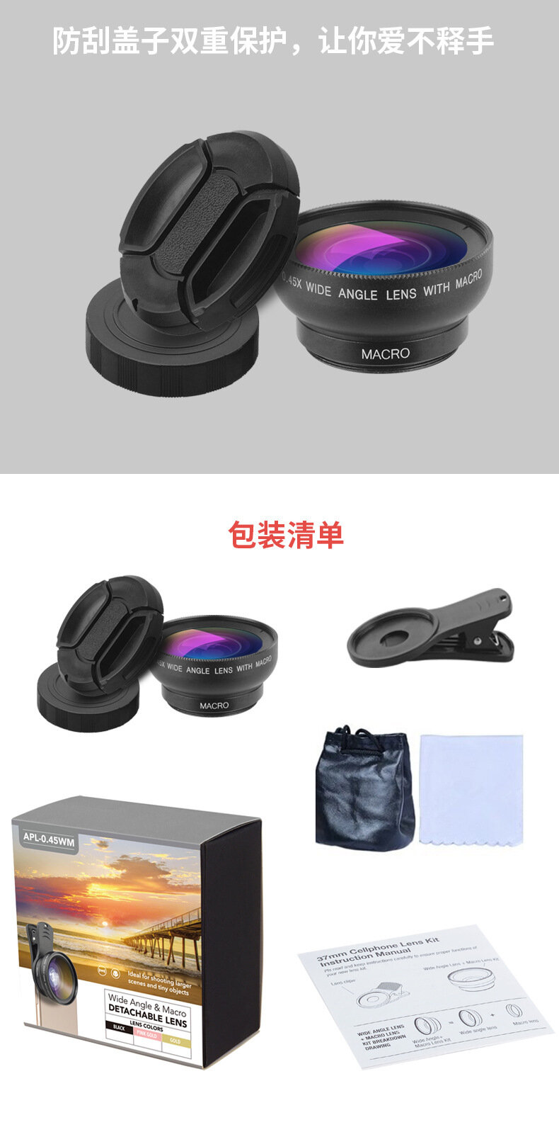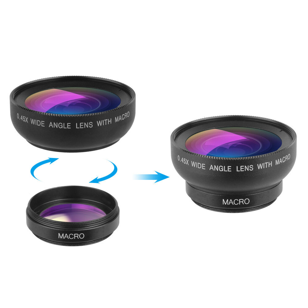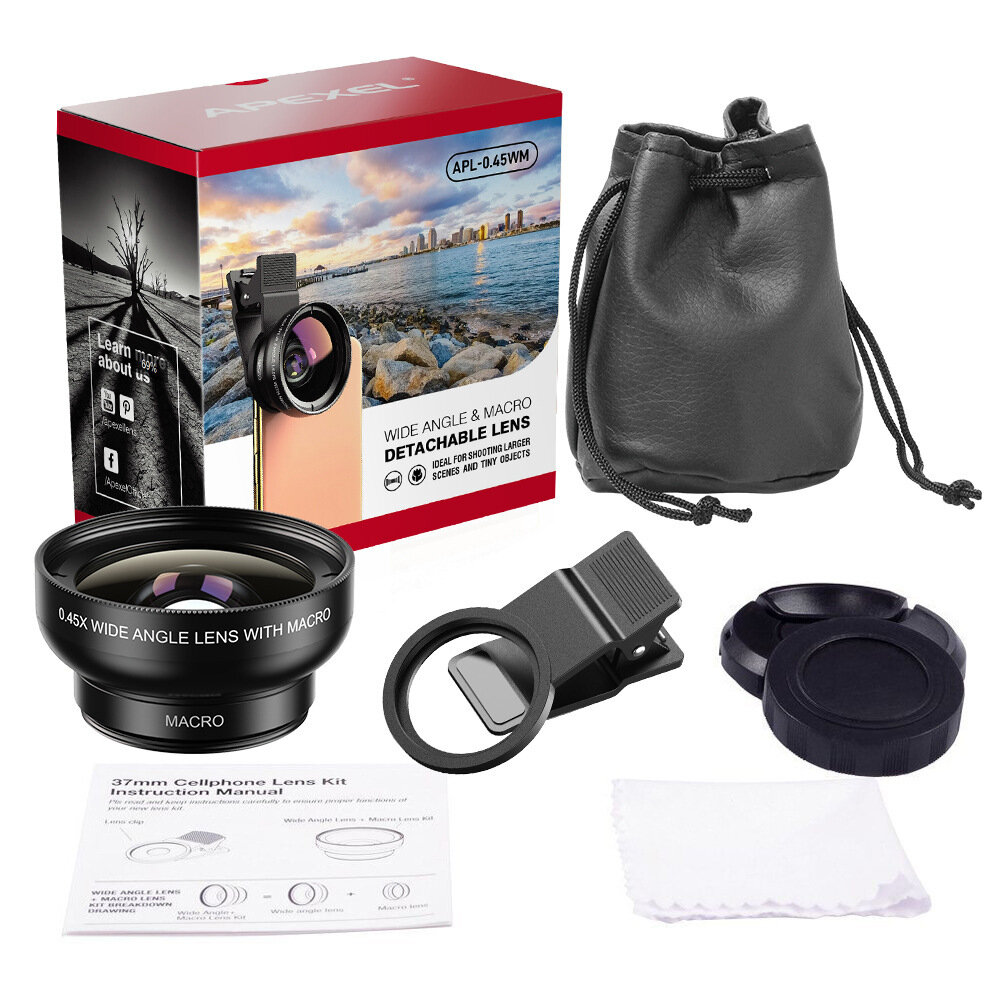 Широкоугольный макрообъектив-линза для телефона 2 в 1, 0.45Х, 37 мм, черный