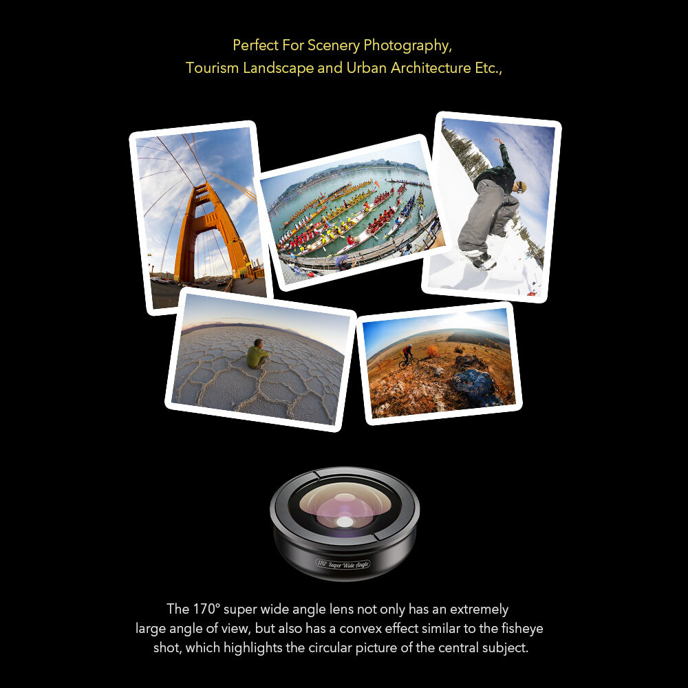 APEXEL APL-HD5SW Супер широкоугольный объектив с углом обзора 170 градусов для смартфона интересное: