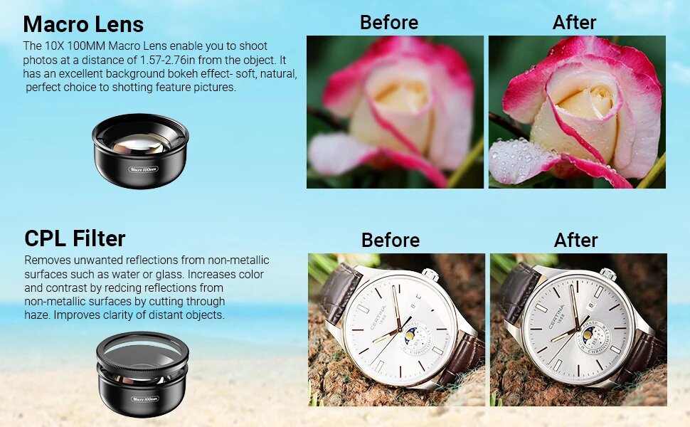 APEXEL обновленный макрообъектив 4K HD 100 мм с фильтром CPL, универсальный зажим, микрообъективы для iPhone, Samsung, все смартфоны, macro lens with CPL интересное: