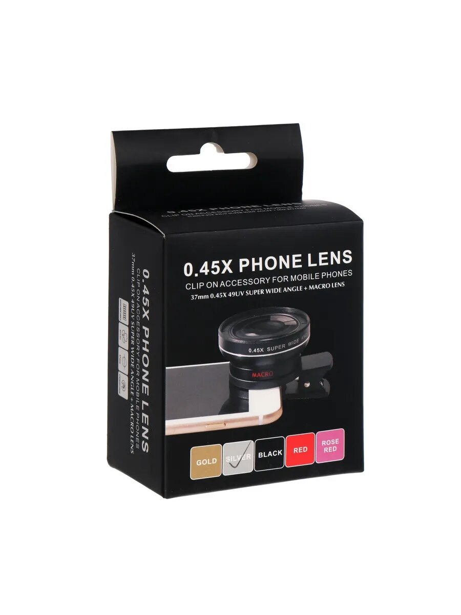 Широкоугольный макрообъектив-линза для телефона 2 в 1, 0.45Х, 37 мм, черный