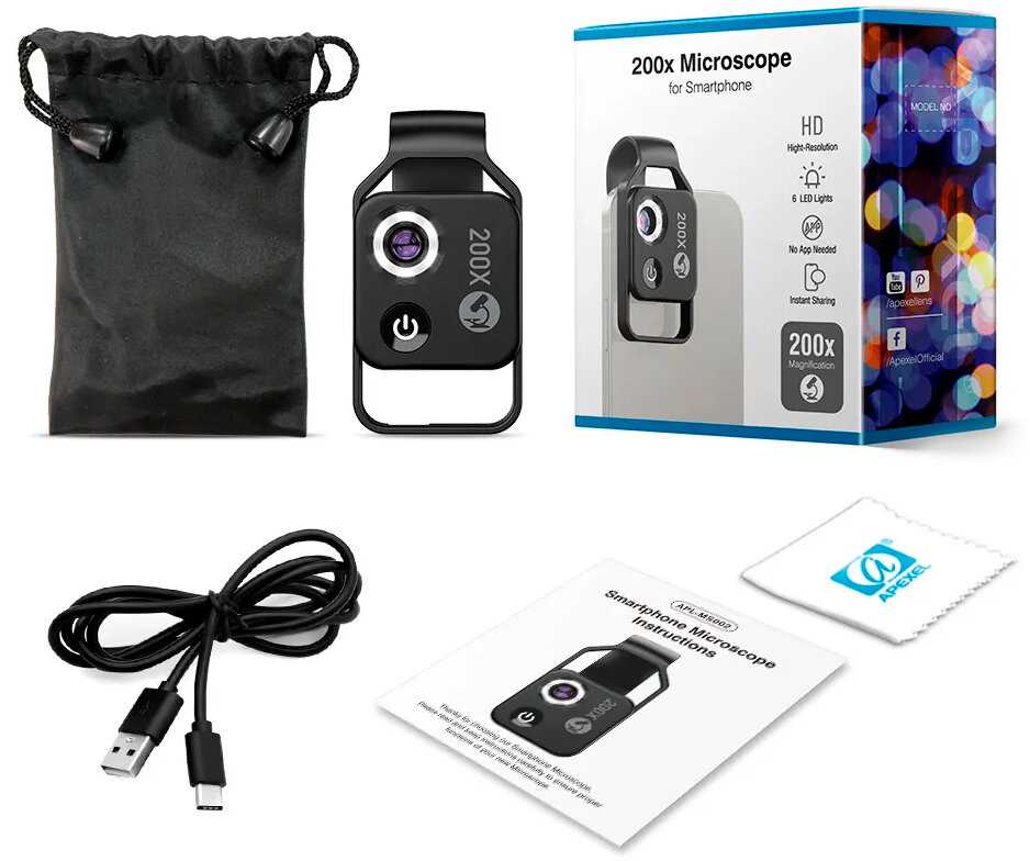 Объектив-микроскоп на камеру смартфона Apexel Microscope Lens (MS002C) интересное: