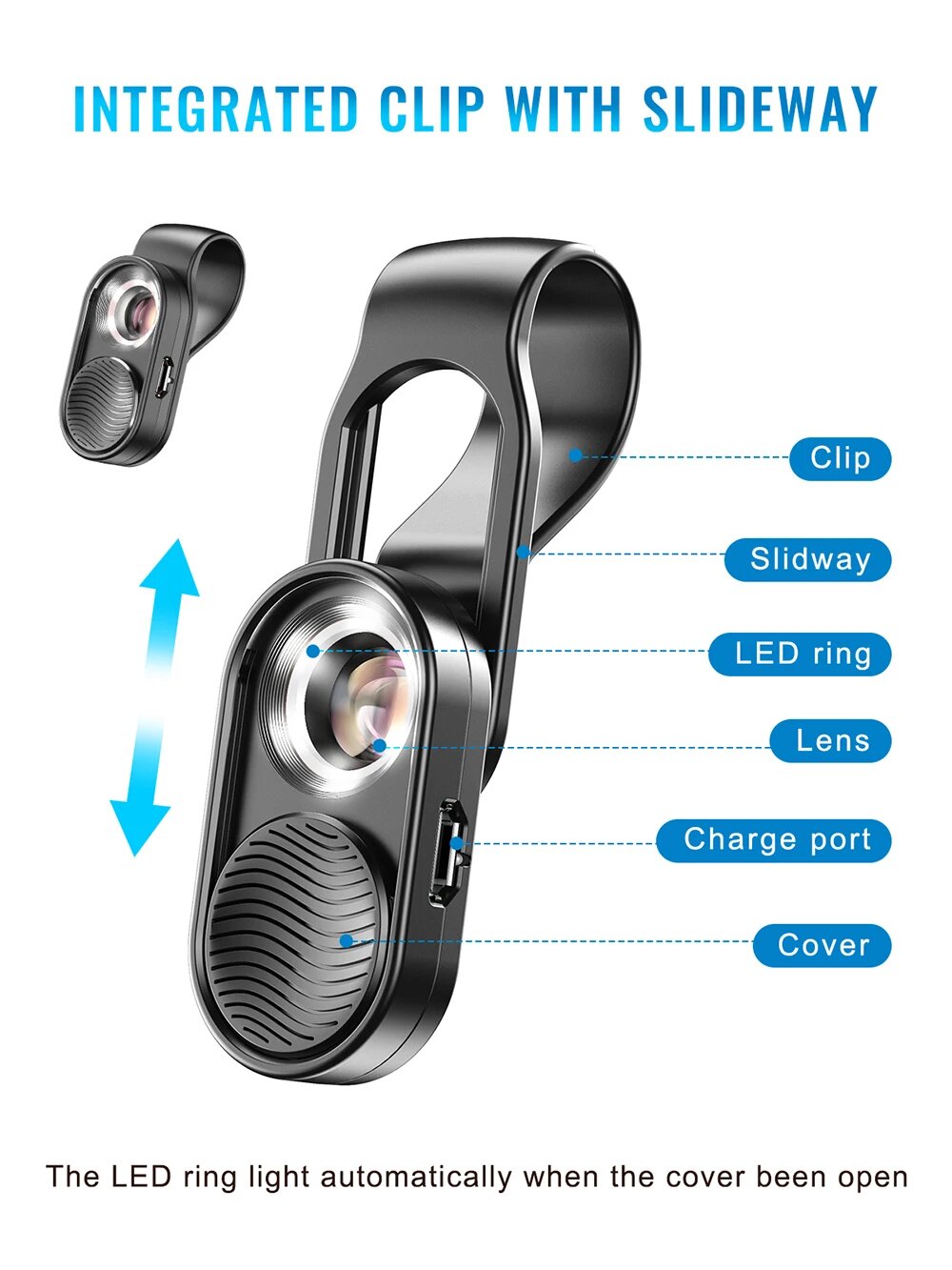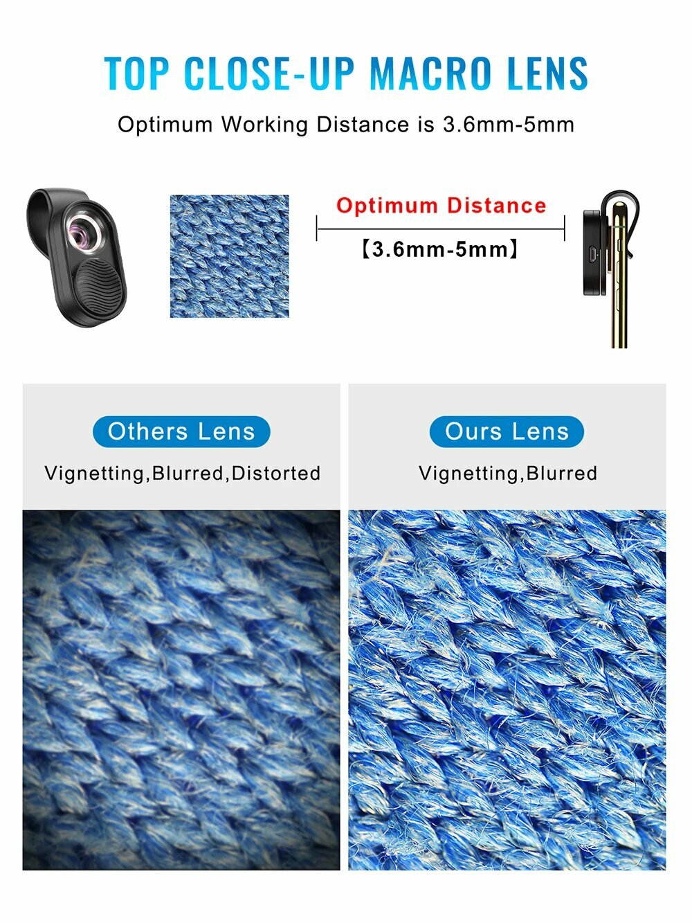 Широкоугольный макрообъектив-линза для телефона 2 в 1, 0.45Х, 37 мм, черный