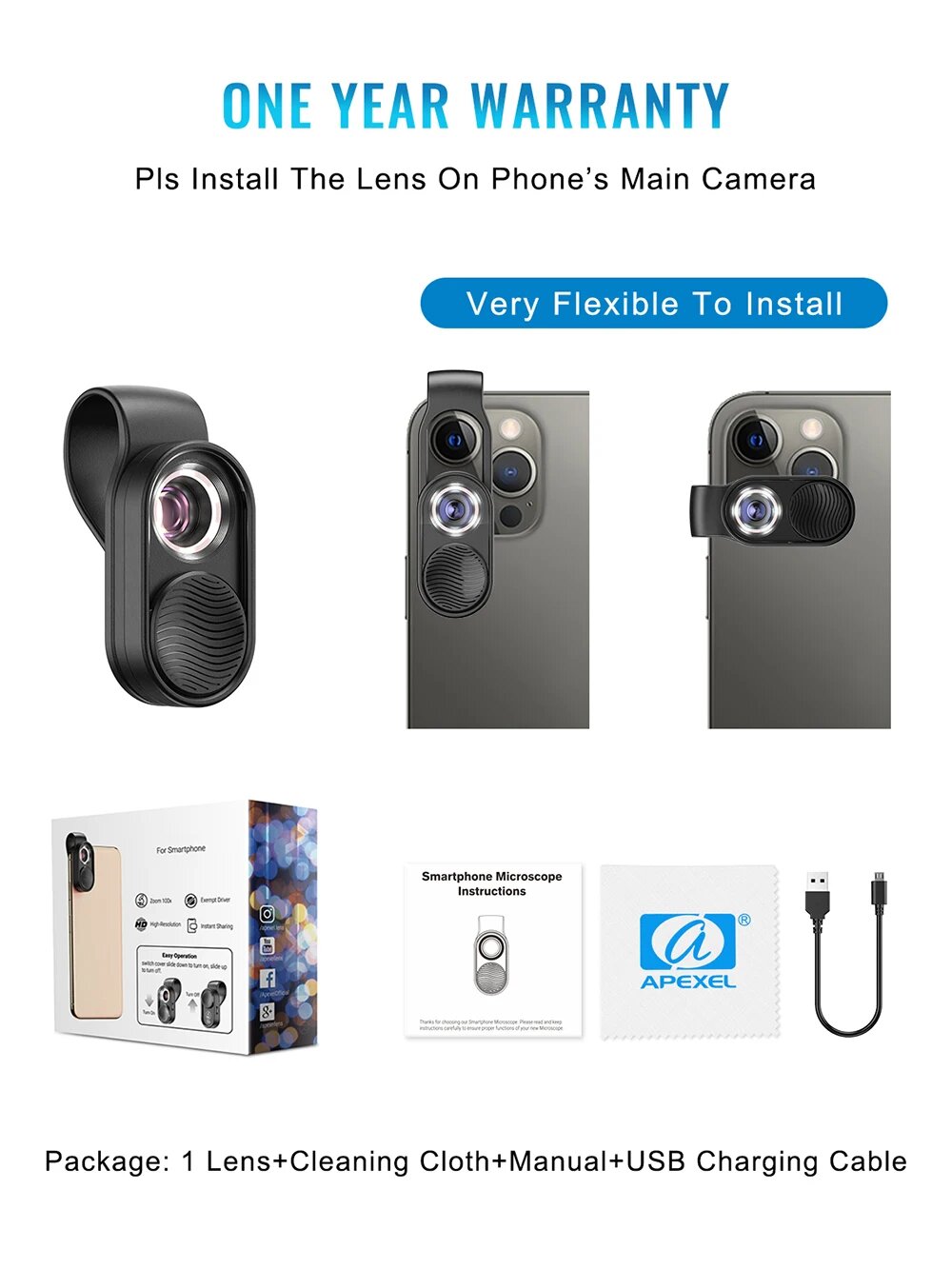 Микроскоп APEXEL100X, микроскоп с увеличением, со светодиодной подсветкой, для любых смартфонов iPhonex xs max Samsung интересное: