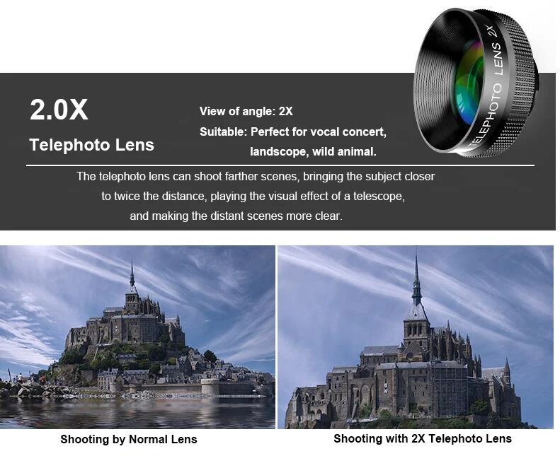 2X телеобъектив для портретной съемки, Профессиональная HD фотокамера, телеобъектив для iPhone, Samsung, смартфона и видеосъемки, Black интересное: