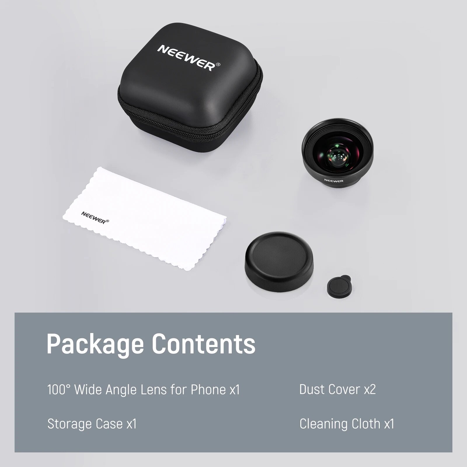 Купить NEEWER HD 18 мм 100 ° широкоугольный объектив для iPhone Samsung держатель для телефона с 17 мм адаптером объектива 0.5X увеличение
