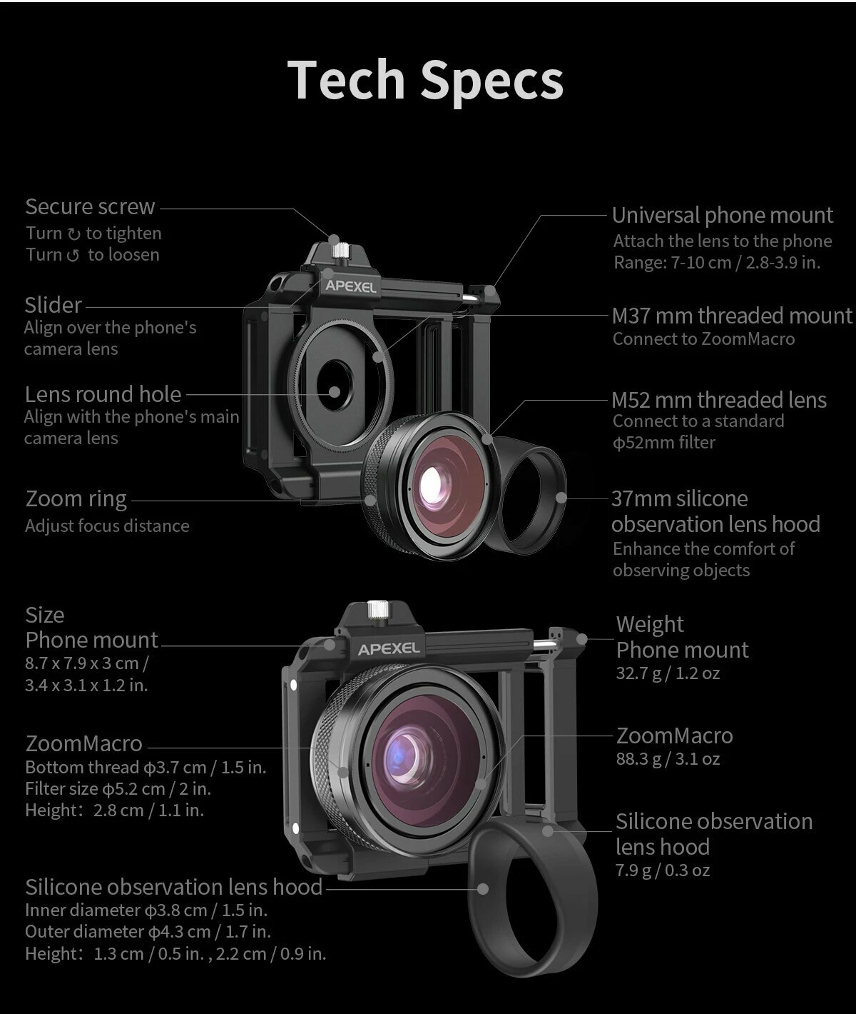 Макрообъектив APEXEL с 10-кратным зумом для мобильного телефона, объектив 37 мм с поддержкой глаз, макросъемка для iPhone, Samsung, все смартфоны, Macro Lens интересное: