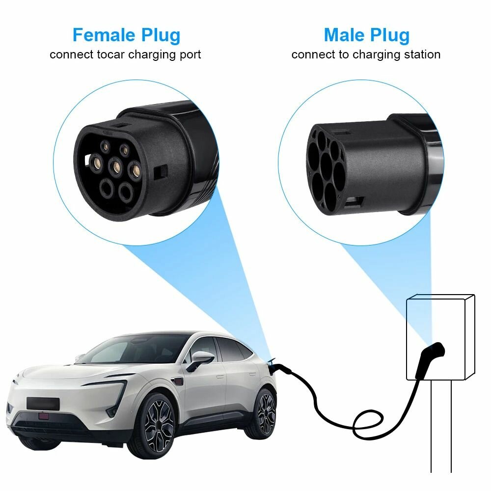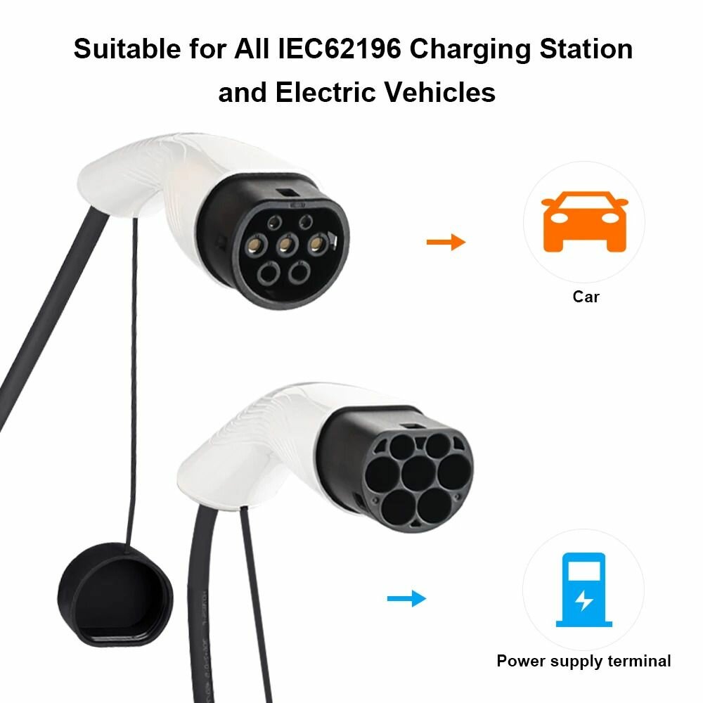 Портативная зарядная станция устройство кабель зарядный для электромобиля Teschev Type-2 to Type-2 мама-папа 7кВт 1-фаза 3м
