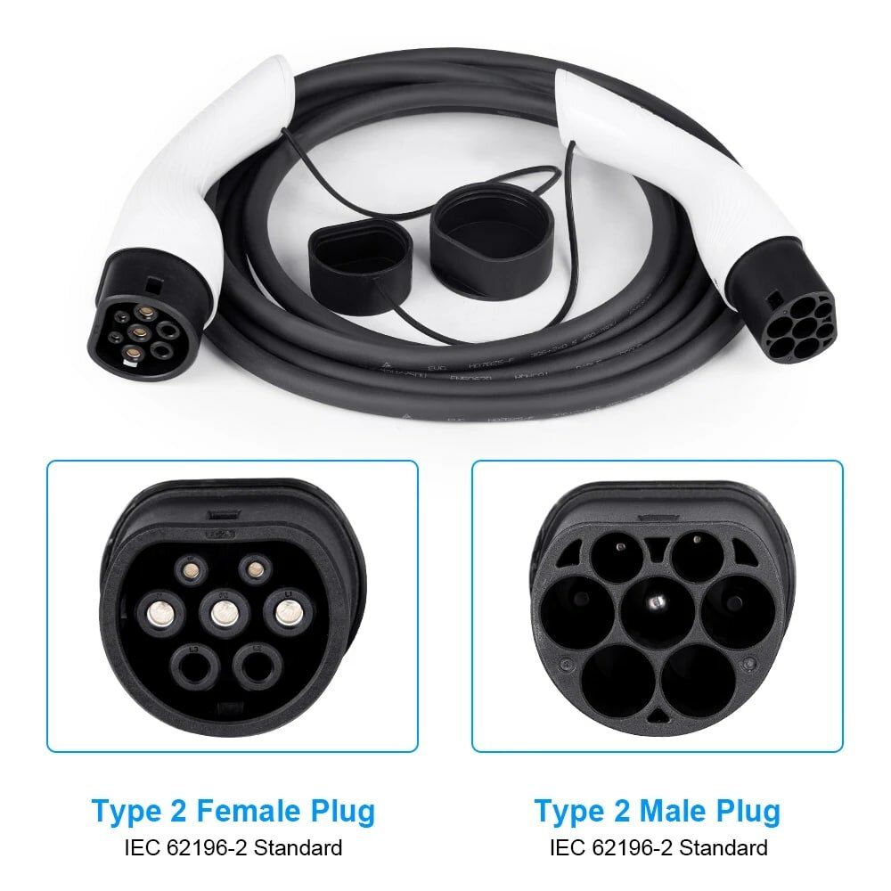 Портативная зарядная станция кабель зарядный для электромобиля Teschev Type-2 to Type-2 мама-папа 3.5кВт 1-фаза 3м