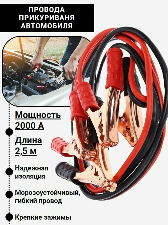 Провода для прикуривания автомобиля 2000А 2,5 м интересное: