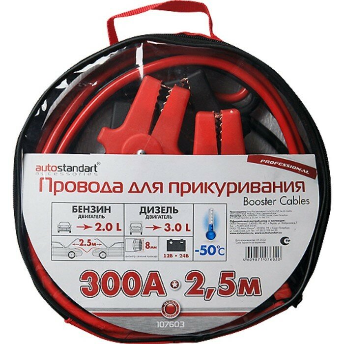Пусковые провода Professional, до -50С, d=8.5мм, длина 2,5м, 300А (в морозоустойчивой сумке)(AS107603) интересное: