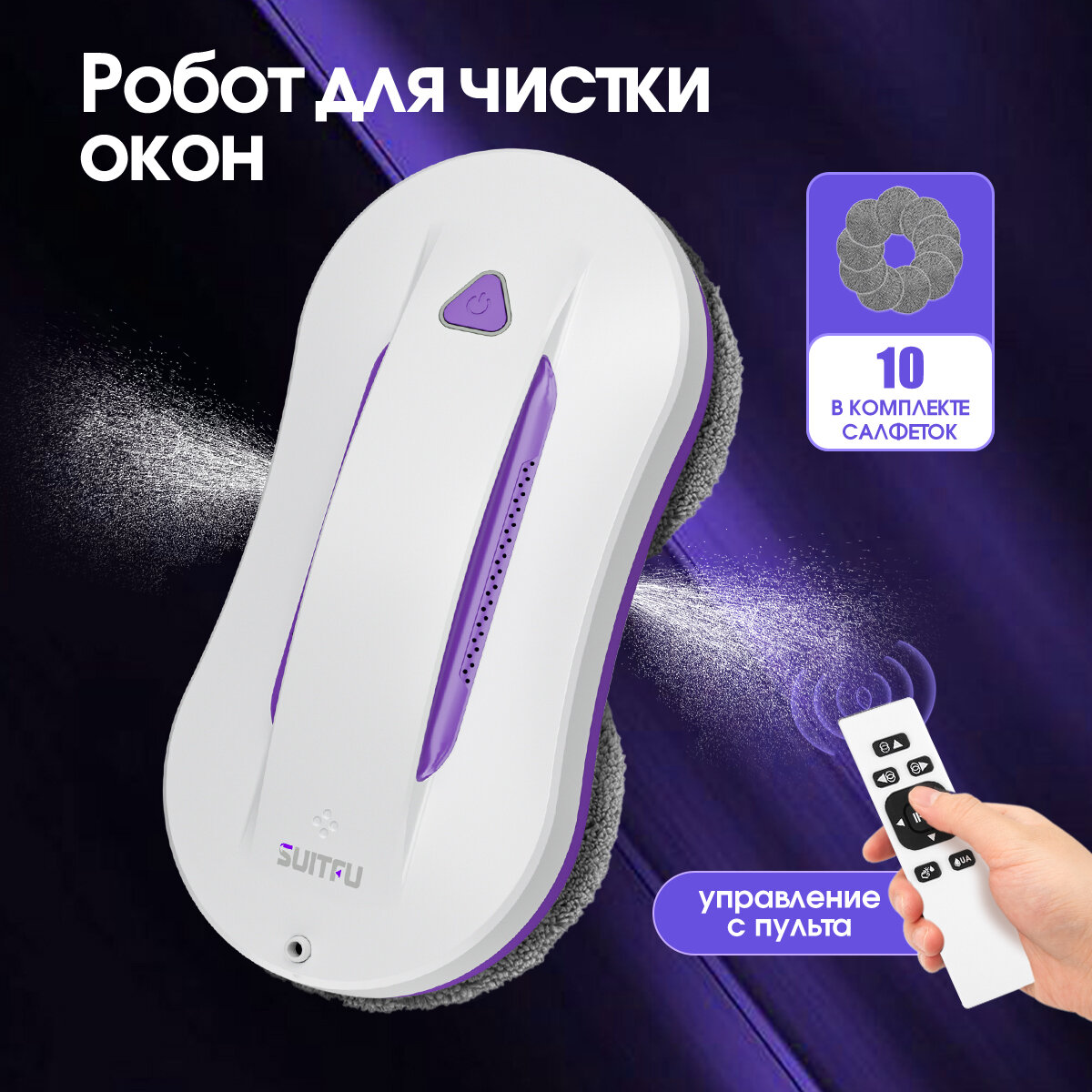 Робот мойщик окон с двойным распылением SUITFU RN2, набор салфеток 10 шт, робот для мытья окон белый+фиолетовый интересное: