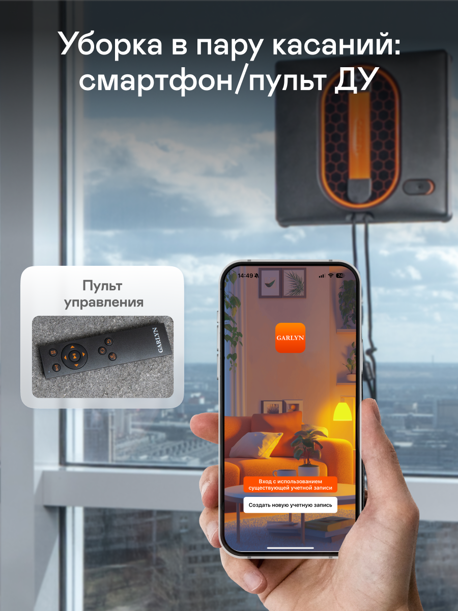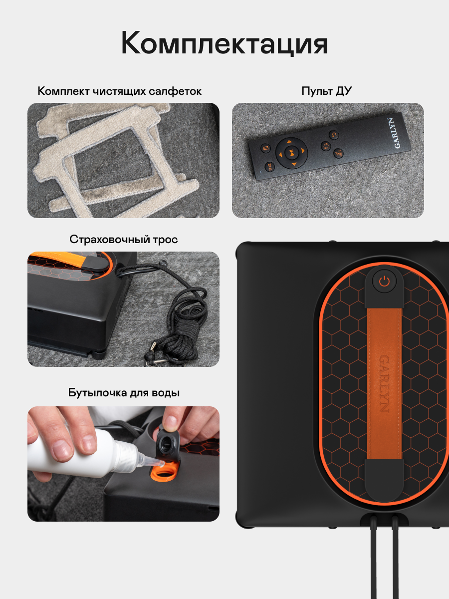 Робот-мойщик окон GARLYN CleanWiz. 4 режима работы. Емкость аккумулятора 500 мА*ч. интересное: